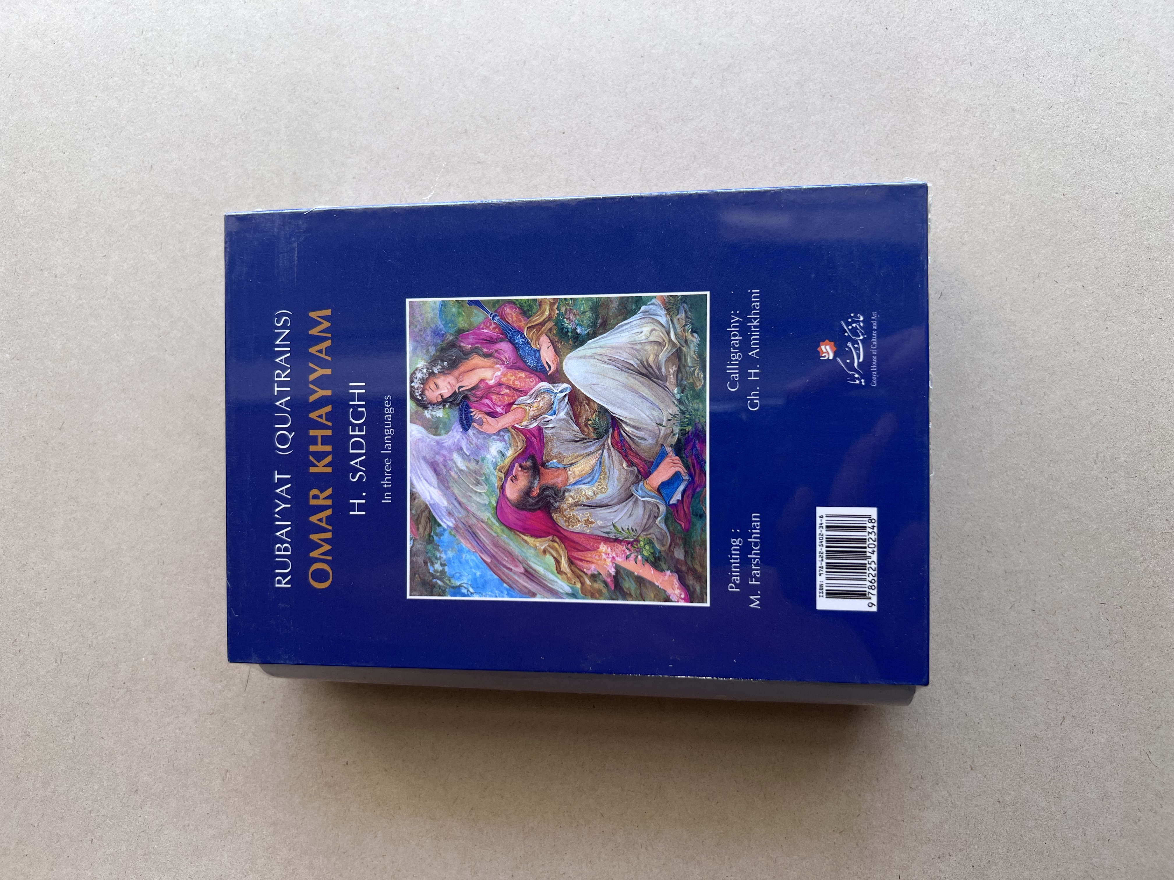 کتاب رباعیات خیام مجموعه از چلیپاهای استادامیرخانی ۳ زبانه با تابلو های استاد فرشچیان / قطع جیبی