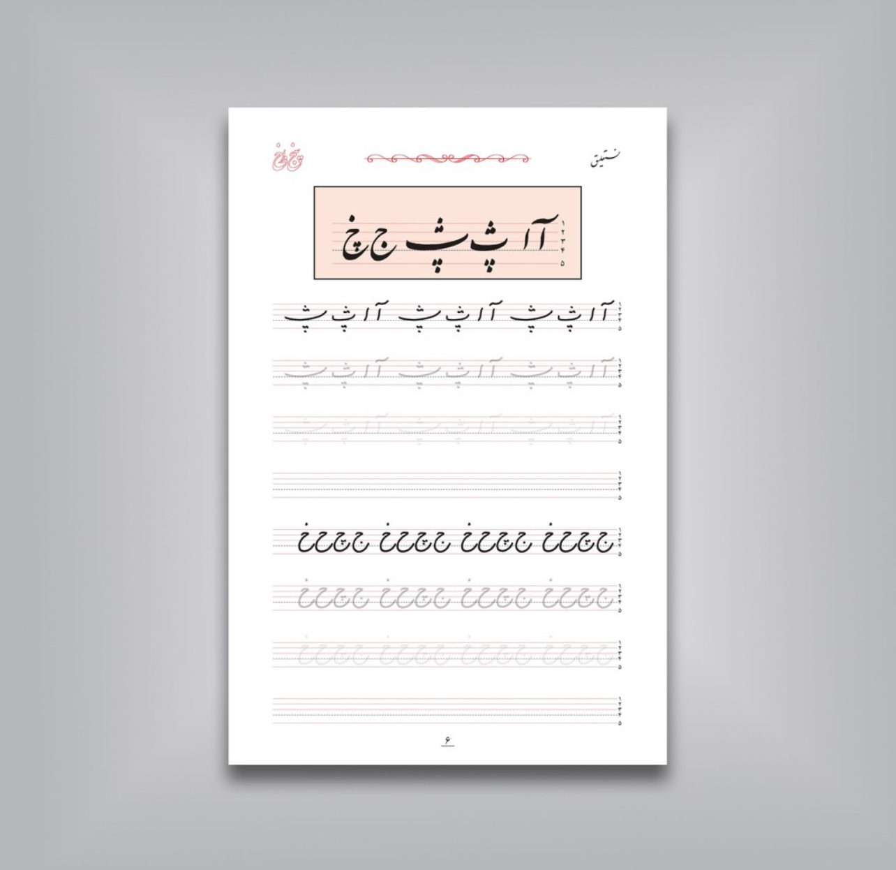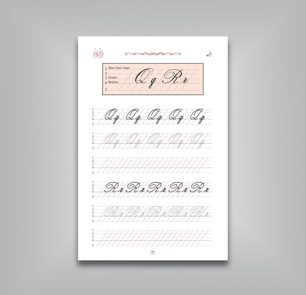 کتاب آموزش خط تحریری پنج خط (شامل خطوط: نستعلیق، شکسته، نسخ، ثلث و لاتین)